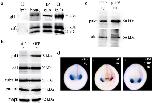 Co-immunoprecipitations of eif6 and gipc2 and of eif6 and gipc2mut. a. We utilized lysates of embryos injected with pCS2gipc2GFP. IP experiments were performed using anti-GFP antibodies for immunoprecipitation and anti-gipc2 and anti-eif6 antibodies for western blots. In western blots of the immunoprecipitations, the eif6 protein was found in the sample immunoprecipitated with anti-GFP (lane 1) and GFP was found in the sample immunoprecipitated with anti-eif6 (lane 3), indicating that eif6 and gipc2 co-immunoprecipitate. Lane 2=embryo lysate. In control IP using unrelated IgG the gipc2GFP and the eif6 bands are absent (lane 4). Lane 5=only an anti-GFP immunopositive band is present in the immunoprecipitate derived from lysates of pCS2GFP-injected embryos. b. We utilized lysates of embryos injected with pCS2gipc2mutHA (gipc2mut = gipc2 with PDZ domain deletion) to perform the IP experiments using anti-HA and anti-eif6 antibodies. The blots indicate that while in the lysates both eif6 and gipc2mutHA are present (lane 2), this does not occur in the reciprocal IPs, i.e., the gipc2mutHA band is absent in anti-eif6 IP (lane 1), and the eif6 band is absent in the anti-HA IP (lane 3). Therefore, gipc2mutHA does not interact with eif6. Lane 4=control IP using unrelated IgG: no bands are present.