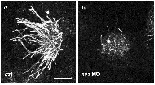 Embryos were injected by ctrl MO 17 ng (A) and nNOS MO 17 ng (B) at stage 1 and fixed in 4%