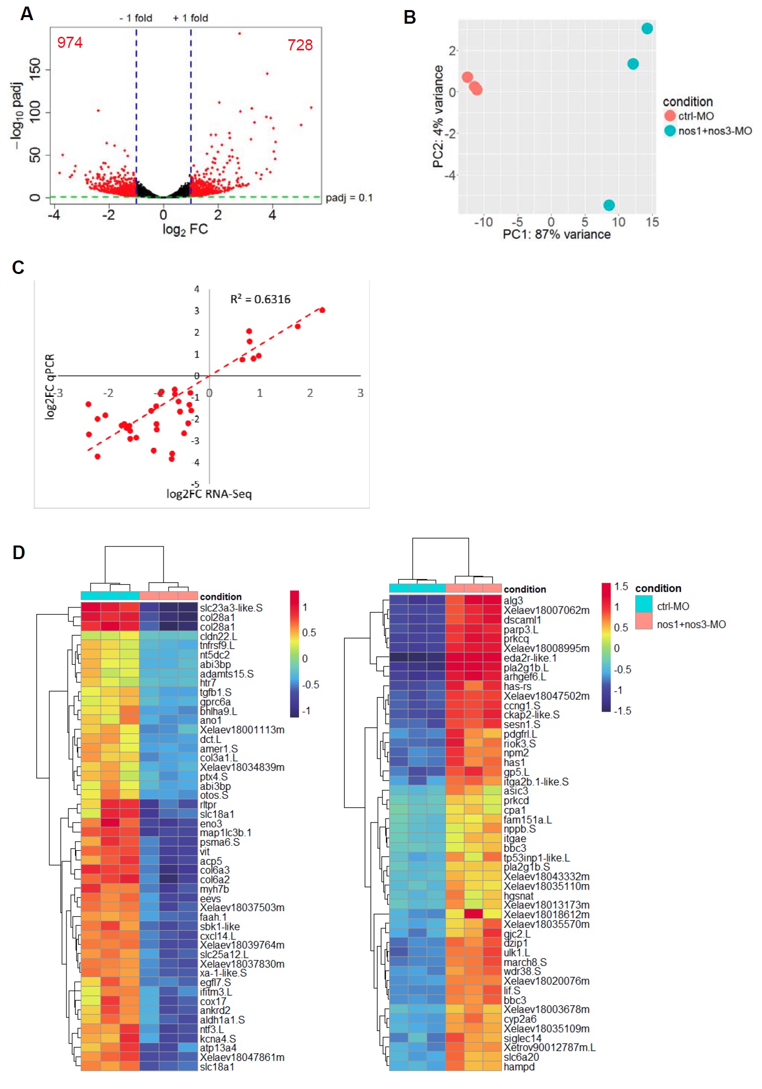 FC > 1 or < 1). (A) PCA plot of normalized gene counts