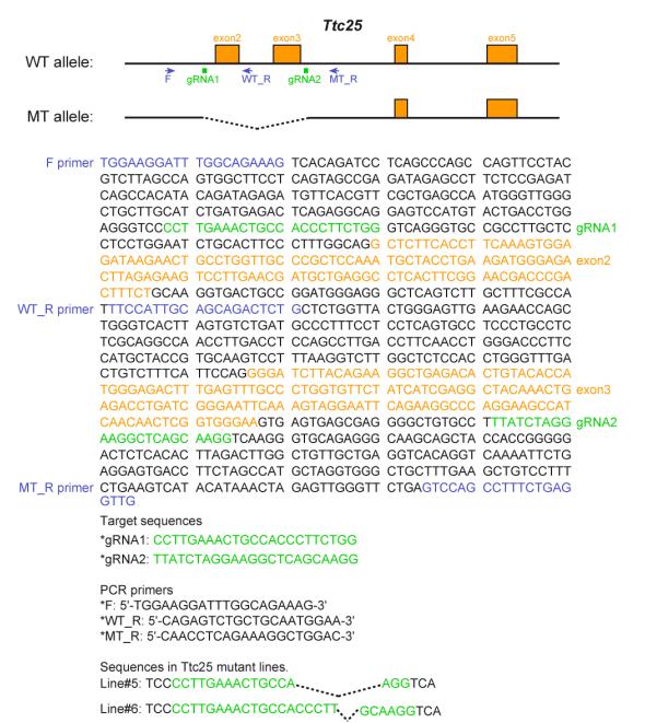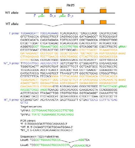 Ttc25 mutant mice were generated with the use of the clustered regularly interspersed short