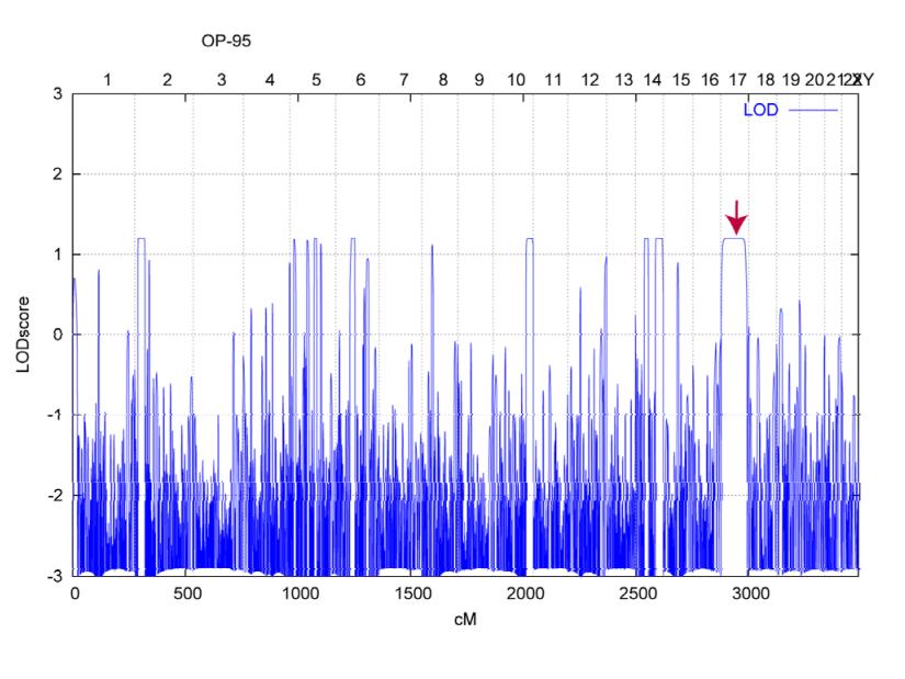 Figure S1: SNP-Haplotype analysis of OP-95 II1; cM: centimorgan, Allegro LOD score: logarithm