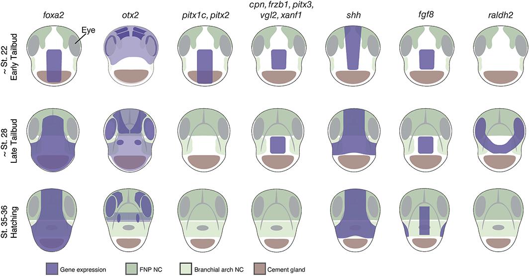 Genes referenced: aldh1a2 cpn1 fgf8 frzb hesx1 otx2 pitx2 pitx3 prdm1 shh tbxt