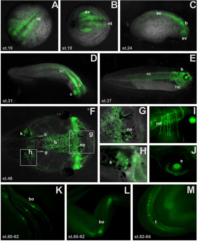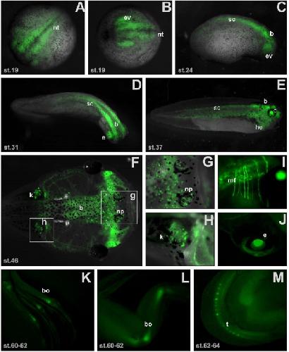 (X. laevis, stages 60–64), GFP is expressed in the growth