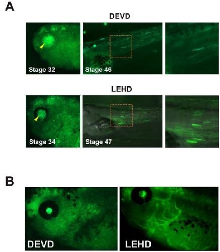 stages 20-21 and subjected to a DEVD-linked coumarin-based fluorescent compound (AMC). Only the