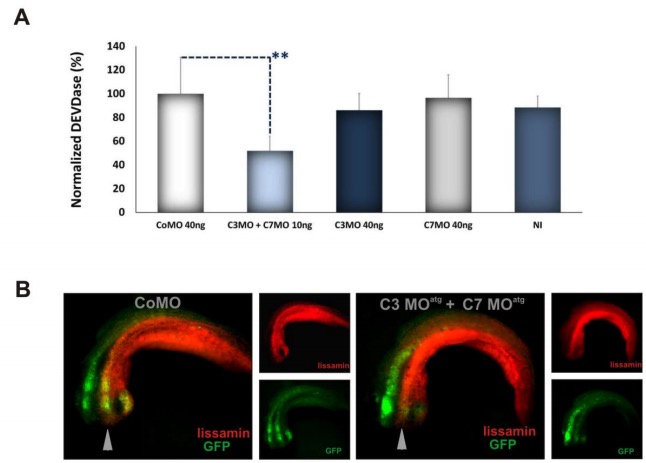 with the combination of 3 ng C3MO and 3 ng C7MO or 6 ng control MO (CoMO). 2 ng of the CoMO