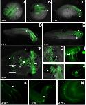 GFP positive. b, brain; bo, bone; e, eye; ev, eye vesicle;