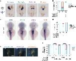 Figure 4. Mcam regulation of left-right asymmetric development in zebrafish and Xenopus.(aâd) Developing organs in DFCmcam MO morphants were visualized by WISH using RNA probes of cmlc2 (a, heart) and foxa3 (c, endoderm). Quantitative analysis of embryos with normal, reversed, bilateral and absent asymmetry is shown in b,d. n, number of embryos. The left schema in a shows embryo positions in the embryo (A, anterior; P, posterior; L, left; and R, right). In c, l (green arrow)=liver, p (red arrow)=pancreas and g (blue arrow)=gut. H.p.f., hours post-fertilization. Scale bars in a,c , 100âμm. (e) Xmcam-MO (1âpM) caused situs defects at stage 45, in Xenopus embryos including heterotaxia (ht) and situs inversion (si) compared with the wild type (wt) situs solitus. Heart looping and position is outlined by red dots or red arrow, respectively. Gut coiling is outlined by light blue dots. Position of gall bladder is indicated by green auto-fluorescence and a green arrow. Scale bar, 1âmm. (f) Organ situs in Xenopus embryos at tadpole stage injected as specified. Injections were performed in left or right side of dorsal marginal zone (L- or R-DMZ) at the 4-cell stage. Data are presented as mean±s.e.m. Pearson's chi-square tests and **P value<0.01. n, number of embryos. |