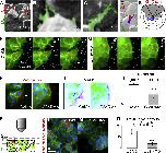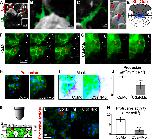 Figure 5. DC Protrusion Analysis(AE) Direction of DC protrusions invivo (arrowheads, AC) was measured in relation to the SL external surface (D) to reveal a bias toward the SL( E, n= 64 embryos, 1445 protrusions).(F and G) Frames from time-lapse imaging showing DC protrusions (arrowheads) exvivo (see Figure 2D). Protrusions are apparent in the vicinity of the SL in control (CoMo) but not in the C3aRMo-treated explants. Green, membrane; red, nuclei.(HJ) Protrusion activity in the exvivo assay analyzed using the extension-retraction method. Red shows the difference in membrane signal (green) between frames 3min apart (H). The difference reveals the extending protrusions (I, purple).(KN) Exvivo apical protrusive activity of DCs (Land M: green, membrane; red, protrusion; blue, nuclei) is decreased in C3aR-deficient explants (N: n= 32; p< 0.01; error, SD). |