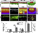 Figure8. Localization of Chemoattractant Source Determines Radial Intercalation(AH) Simulated cell configurations and corresponding chemoattractant levels at the end of epiboly with different localizations of chemoattractant production: only in the SL (Control, A, E), nowhere (Inhibition, B, F), in every cell (Ubiquitous, C, G), and in a restricted region of the SL (Localized, D, H, producing region shown in red).(IL) Experimental validation of the predicted behavior showing sections of the blastocoel roof of stage 11 embryos. Red, nucleus; green, membrane; graft in (L) marked with cytosolic RLDx. White bar indicates tissue thickness.(M) Quantification of tissue thickness, measured in units of cell diameter after normal epiboly (20m), for the four settings insilico and invivo. Error, SD. Significances compared with relevant control: p< 0.05, p< 0.01, p< 0.001; ns, p > 0.05. 1.3 Chem denotes 1.3-fold overexpression in both DCs and SCs. |