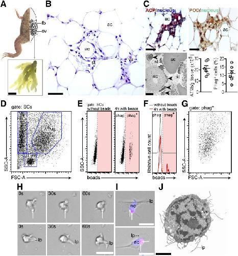 Takahama, Structural and endocytotic differences of fibroblasts and macrophages in the tail fin of amphibian larvae during metamorphosis. 1992, Pubmed