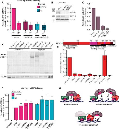 (G) Possible models for coordinated HJURP recruitment by M18BP1 and CENP-C.