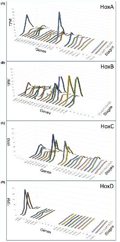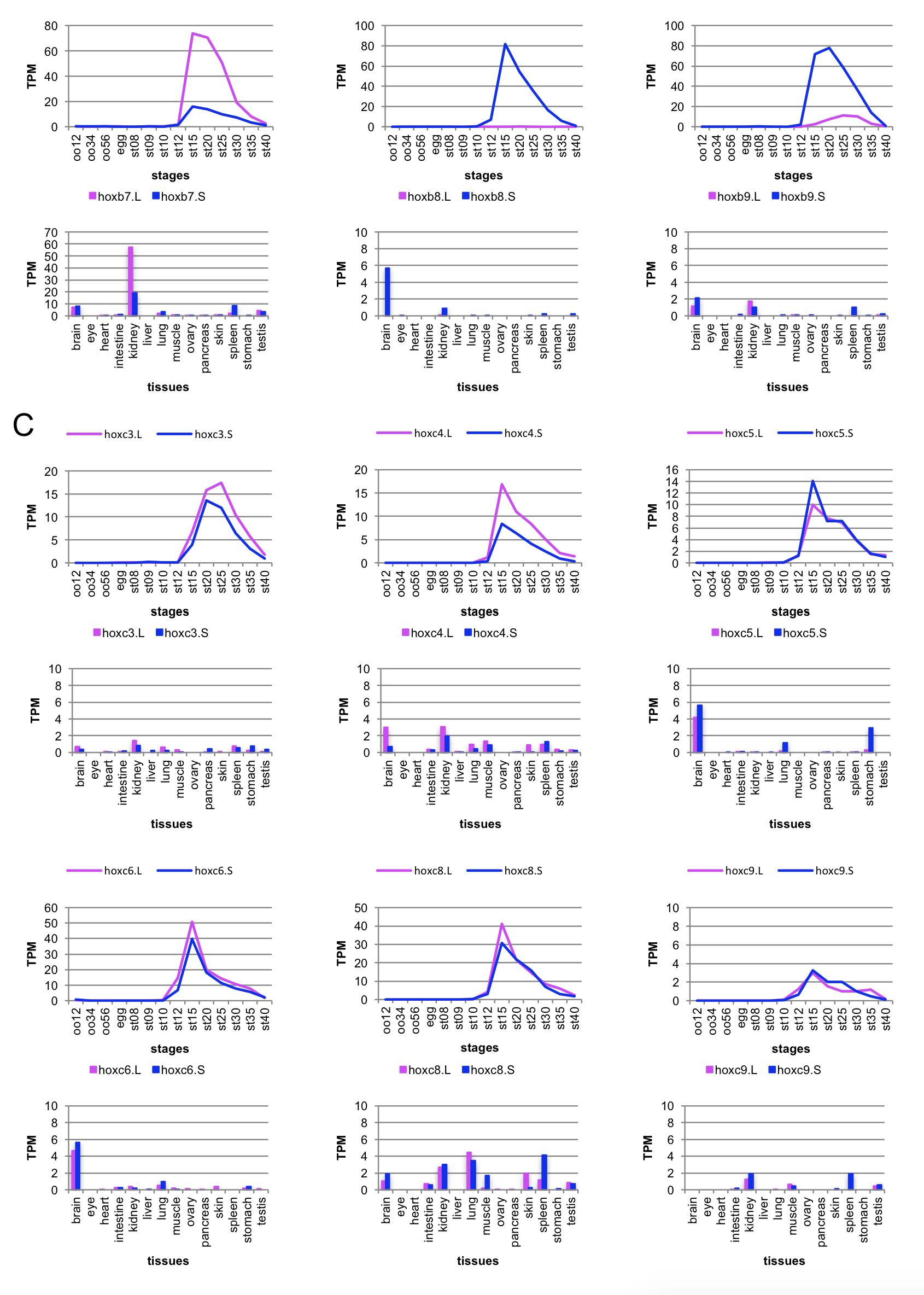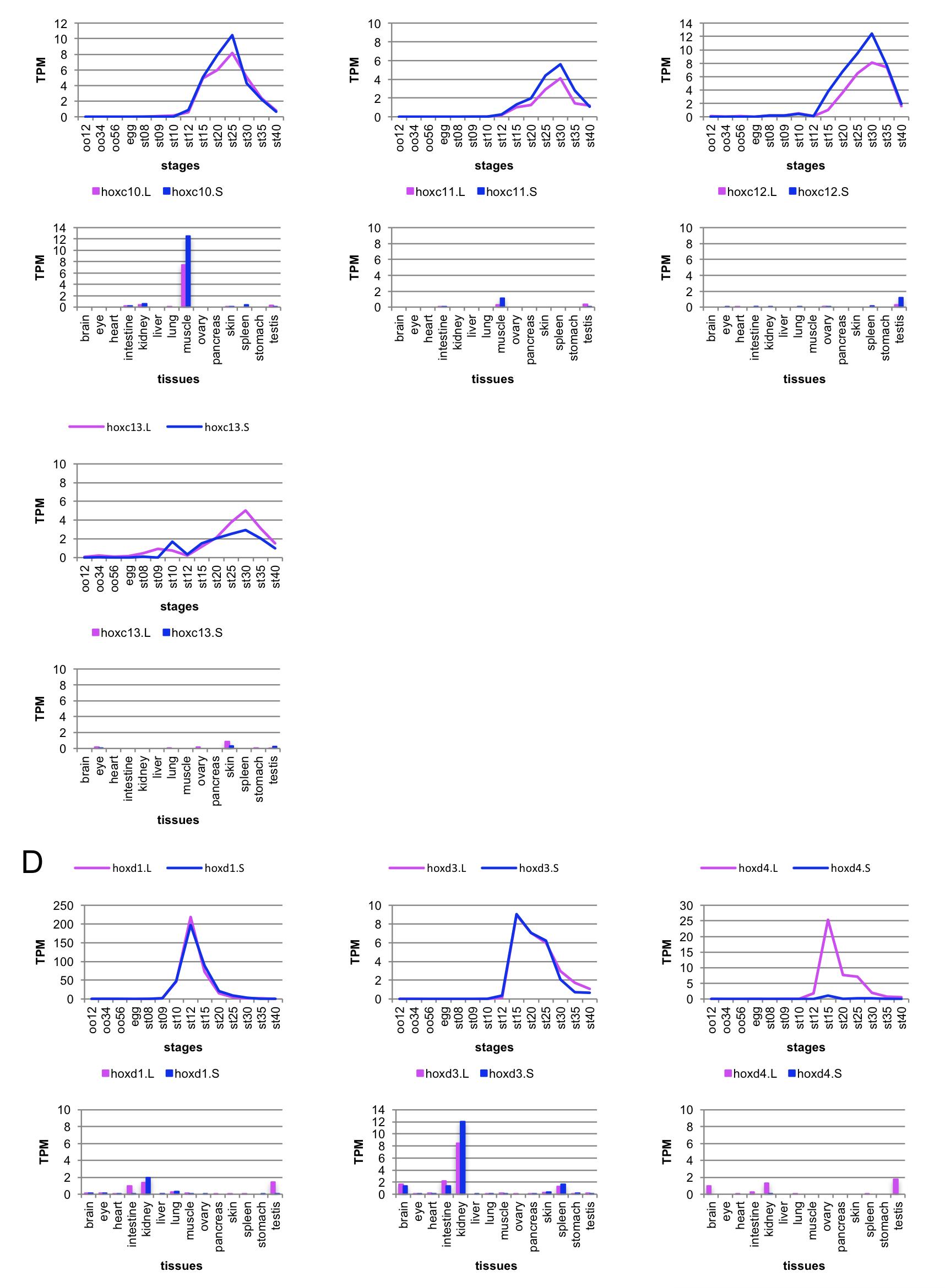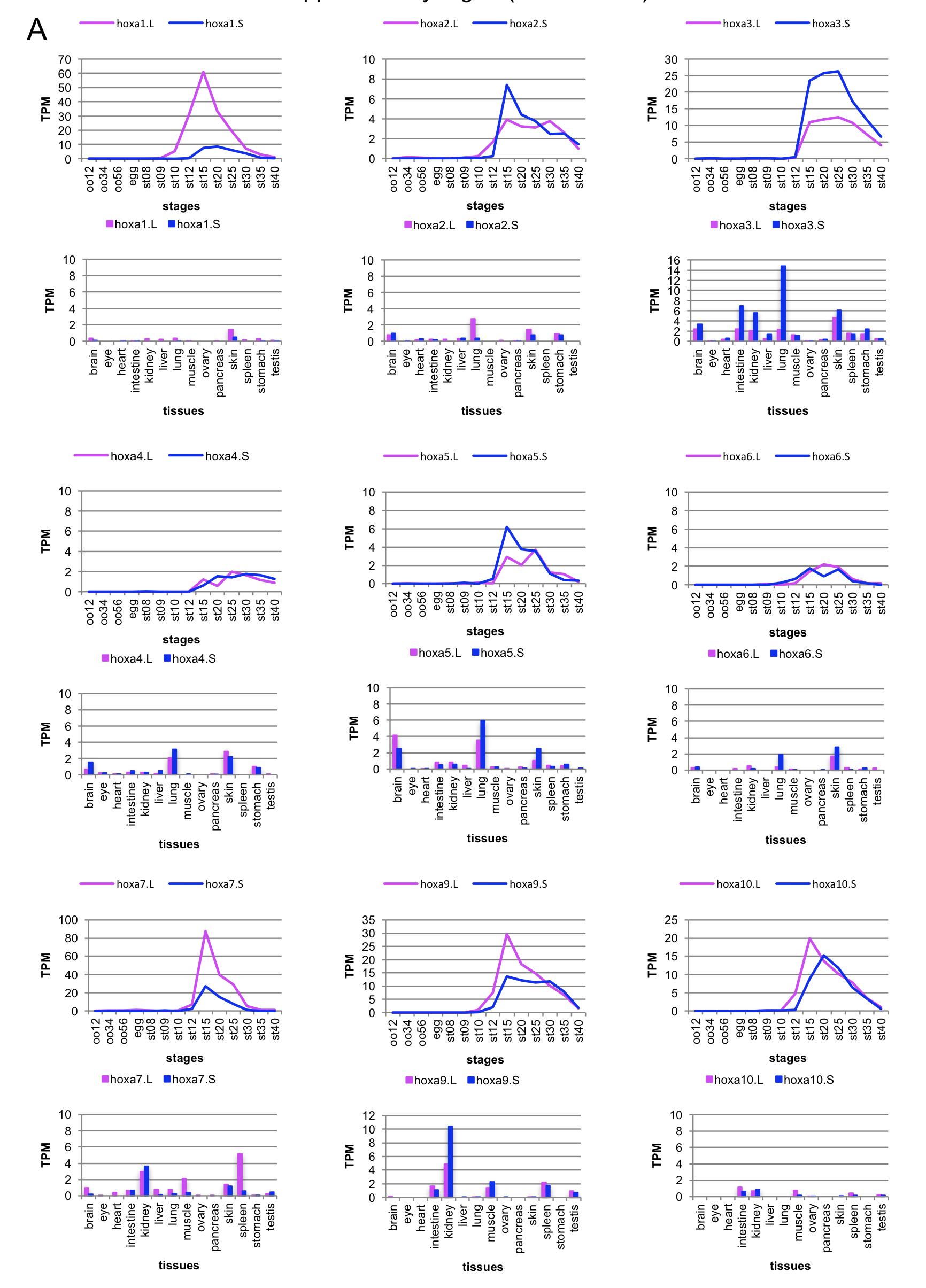 Fig. S3. Expression profiles of all 76 X. laevis hoxgenes.