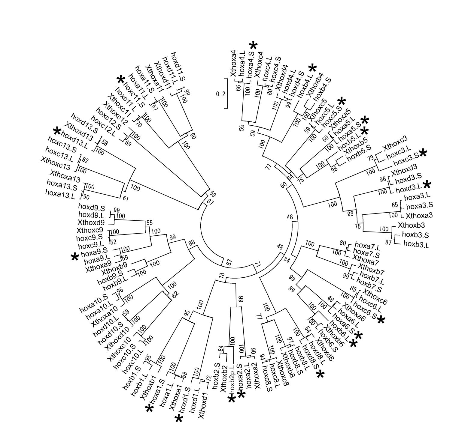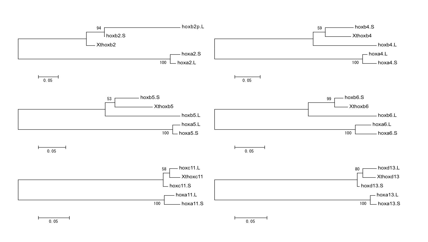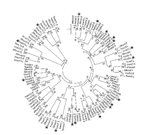 Fig. S1. Phylogenetic tree of the X. laevis and X.tropicalis hox genes.