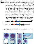 Expression of Rnf146 during early Xenopus development. (A) Peptidyl sequence alignment of Rnf146 from humans and Xenopus. (B) A schematic comparison of Rnf146 from humans and Xenopus. (C) RT-PCR examination of Rnf146 expression in early Xenopus development. odc serves as loading controls. (DâG) Embryos at different stages in situ hybridized with rnf146. ani.: animal pole view. dor.: dorsal side view. lat.: lateral view. bis.: bisection view.