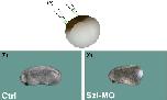 Depletion of Sizzled on the ventral side results in embryos with expanded ventral-posterior structures and normal heads. (A) Schematic diagram showing targeted injection of Sizzled antisense Morpholino into the ventral blastomeres of a four-cell Xenopus embryo. (B,C) Injected and control embryos were collected at stage 25 and analyzed for phenotype; five independent experiments. All controls (n = 150) developed normally. Ventrally targeted Sizzled depletion promoted enlargement of ventro-posterior tissues, while leaving the anterior tissues unaffected. This phenotype was observed in 94% of the Szl-MO injected embryos (n = 117). Compare to Figure 1.