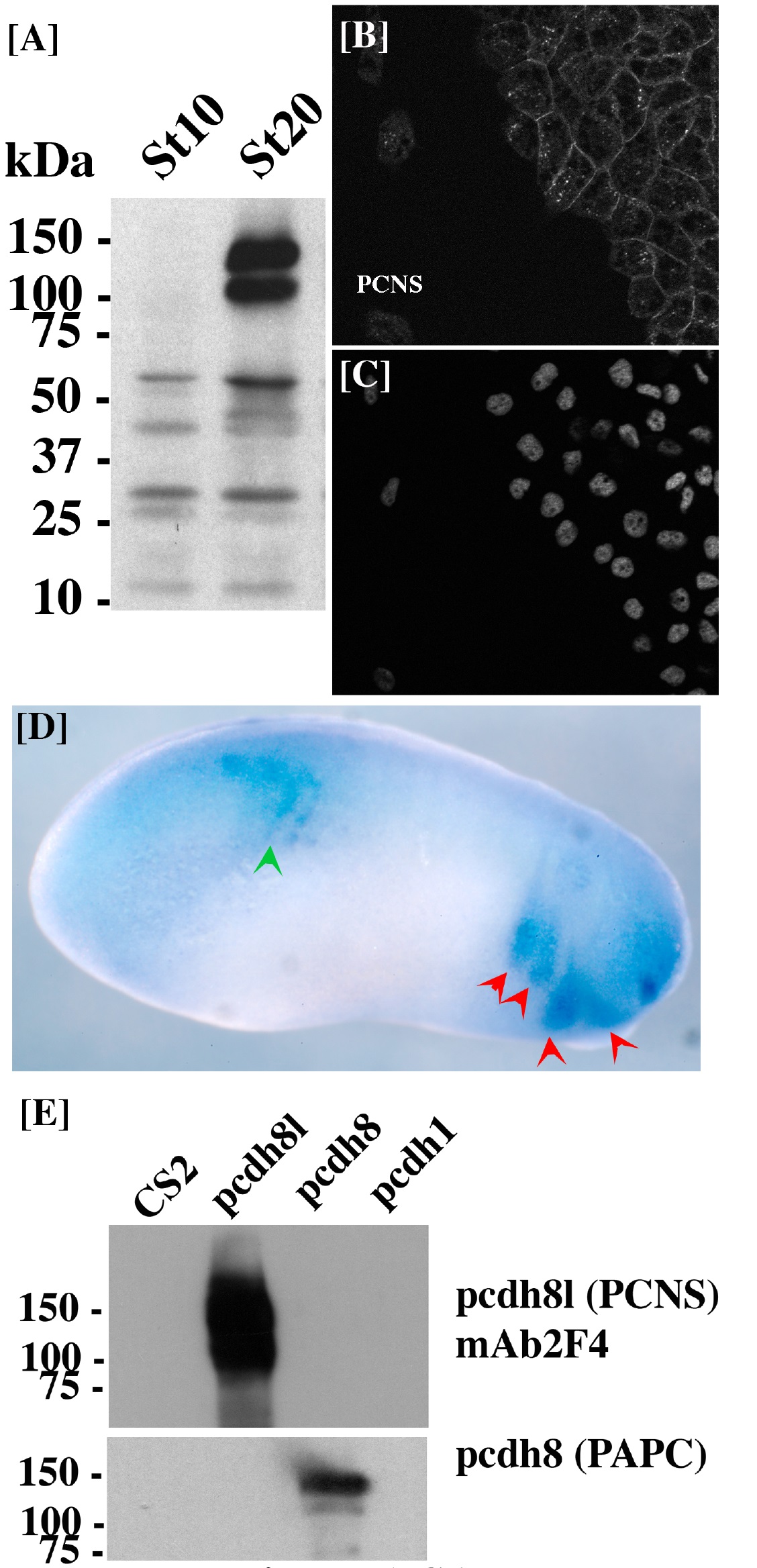 Schneider, Protocadherin PAPC is expressed in the CNC and can compensate for the loss of PCNS. 2014, Pubmed , Xenbase