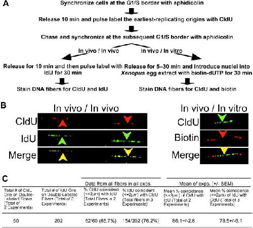 Takebayashi, Mapping sites where replication initiates in mammalian cells using DNA fibers. 2001, Pubmed