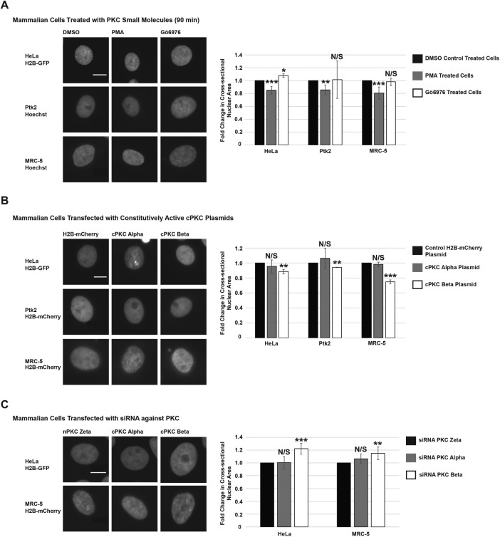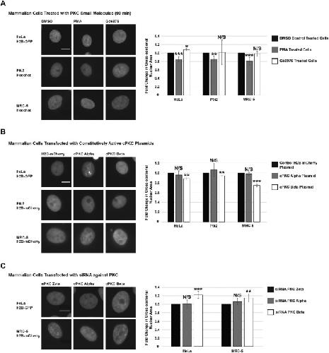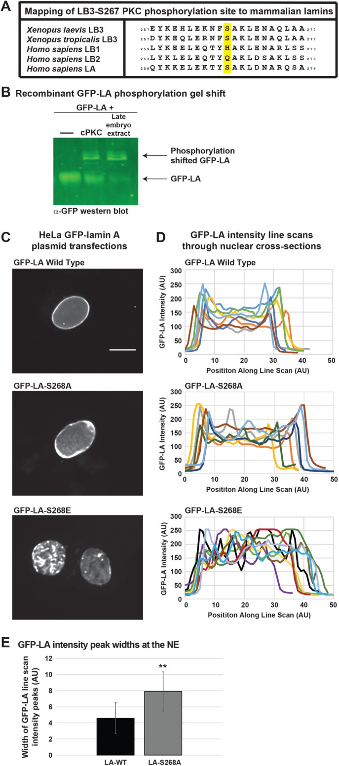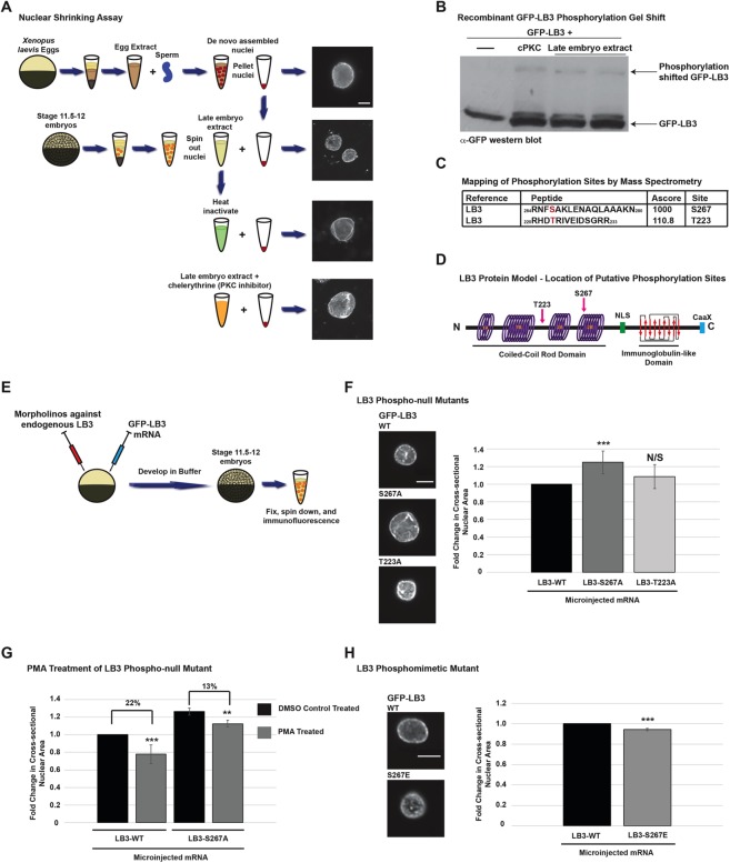 PKC-mediated phosphorylation of nuclear lamins at a single serine residue regulates interphase nuclear size in Xenopus and mammalian cells.