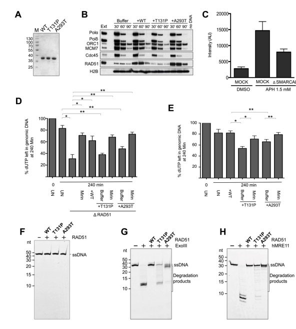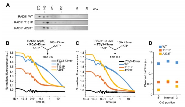 supplemented with 20 nM recombinant human RAD51 WT, T131P or A293T as indicated.