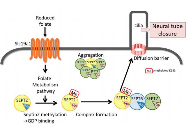 Figure 8. Folate-methylation pathway for ciliogenesis during embryogenesis. Folate signaling contributes to methylation of