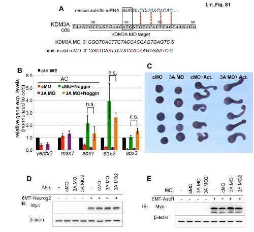 Fig. S1 (related to Fig. 1). MO-mediated depletion of KDM3A and assessment of
