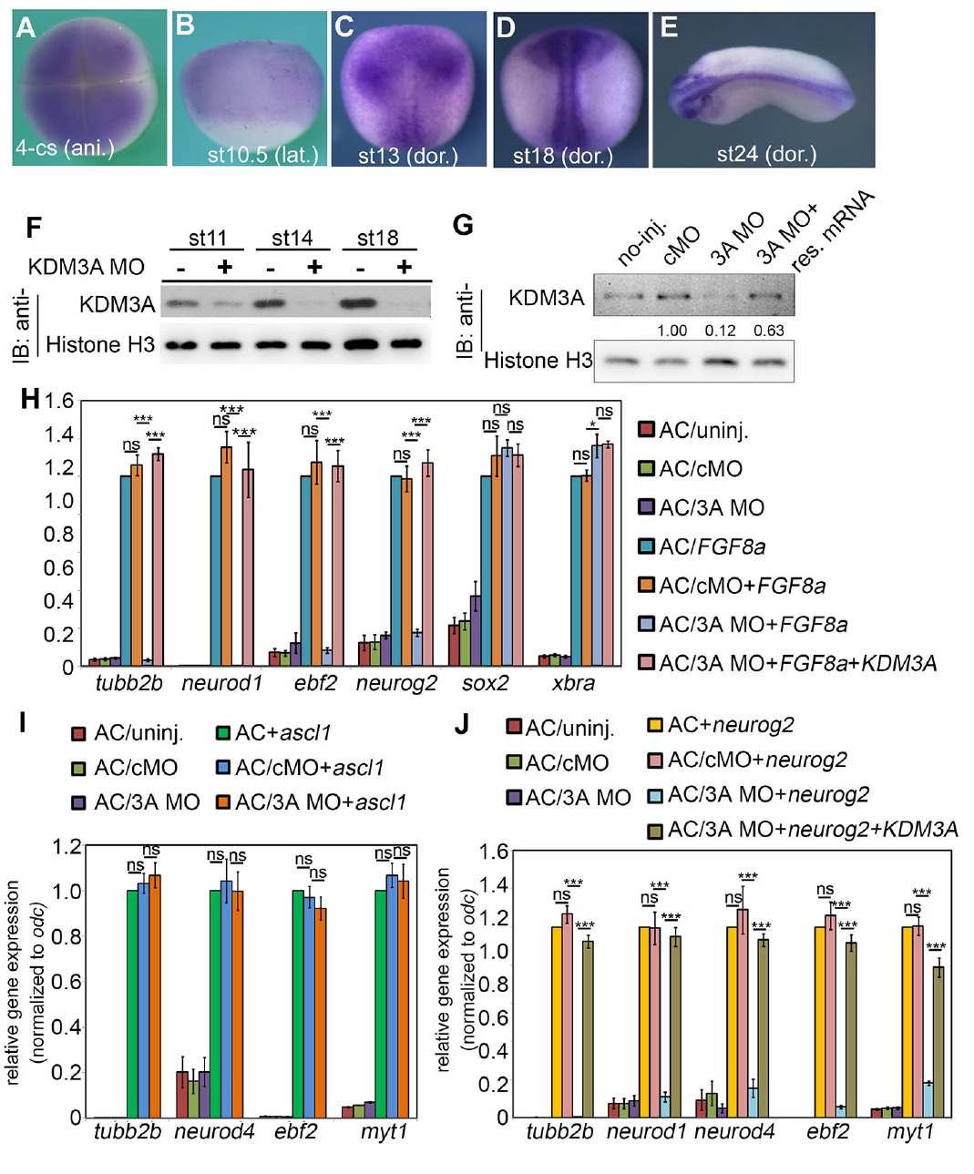 of kdm3a mRNA. (D) Western blot detection of KDM3A protein at stage 11 after