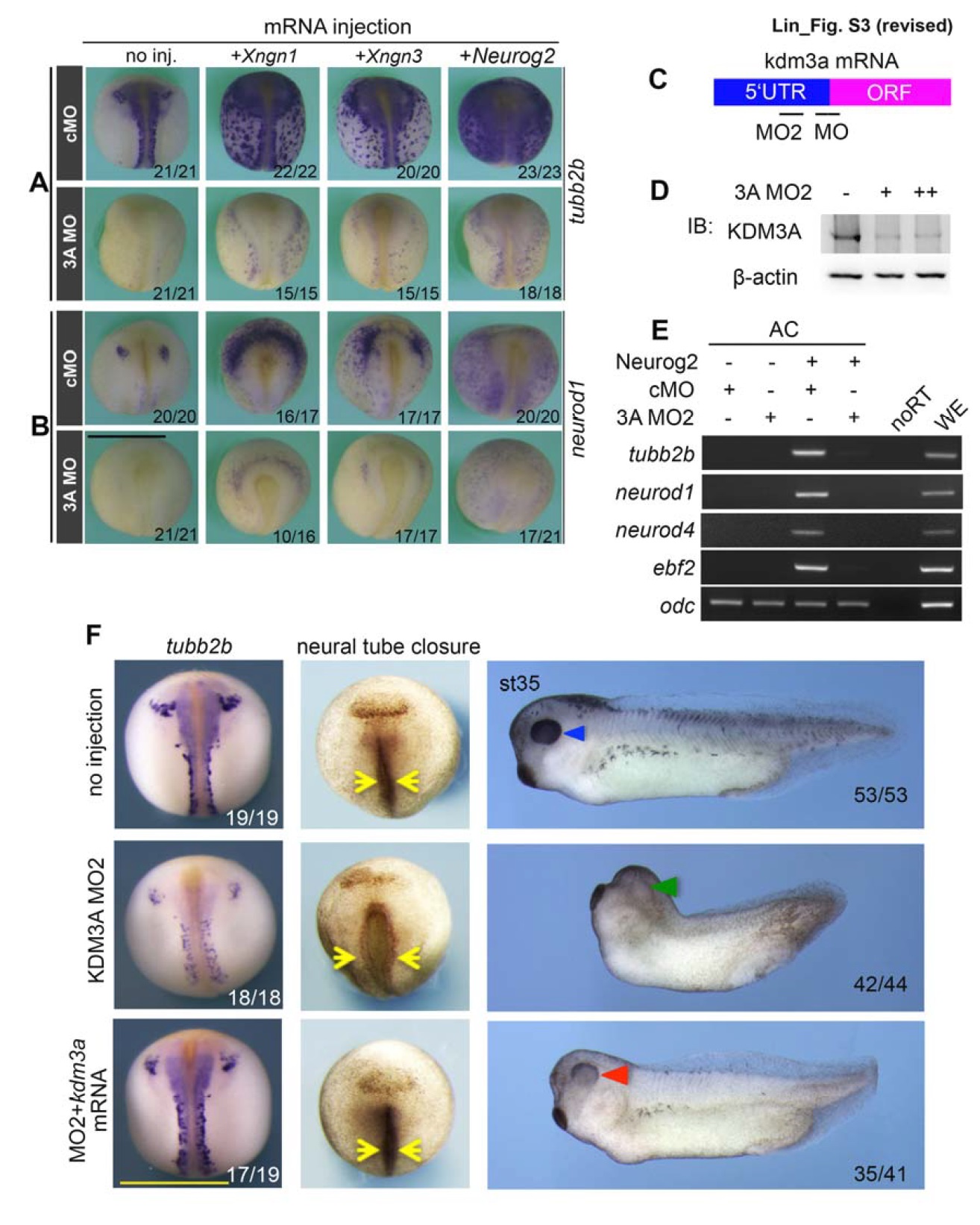 Xenopus and depletion of KDM3A using a second MO (MO2). (A, B) Embryos at
