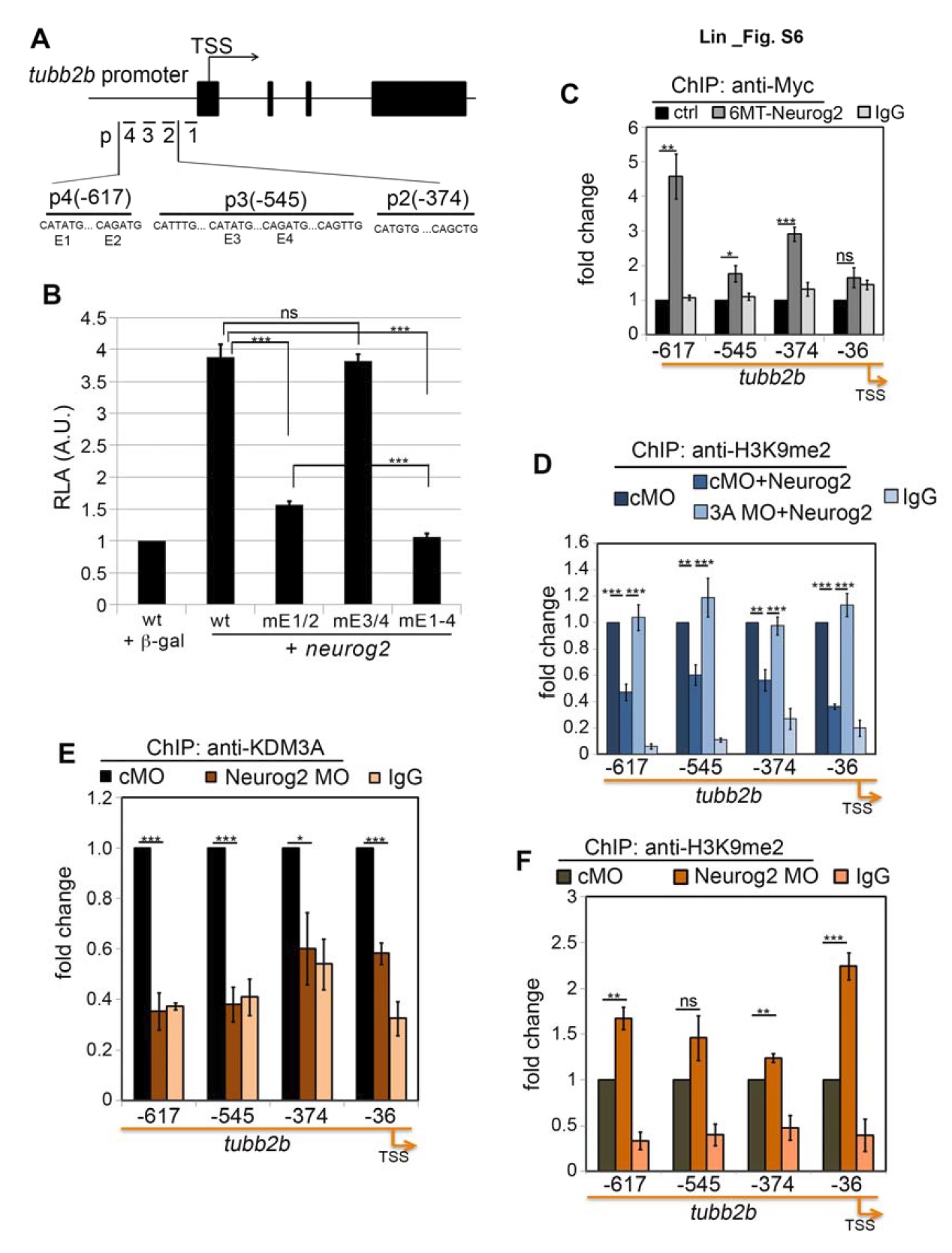 of overexpressed 6MT-Neurog2 on the promoter region of tubb2b. (D)