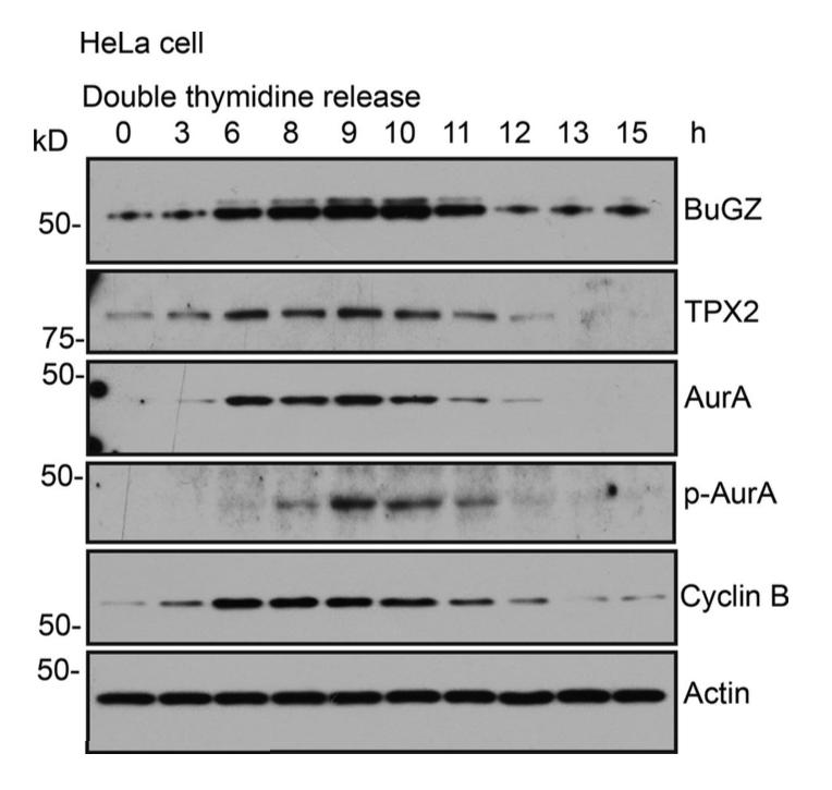 Figure S1. Validation of cell synchronization. After releasing from the double thymidine block, the cells were collected at the indicated time, and cell lysates were analyzed by Western blotting with the indicated antibodies.