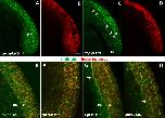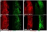 Cells protruding past the defective tissue boundary. (A, B, E, F) Control MO and mem-EGFP (green) injected cells showed an intact boundary between ectoderm and mesendoderm cells, which was respected by all cells. (FN matrix is labeled red.) (C, D, G, H) Cells injected with aqp3b MOs lacked FN matrix, which allowed abnormal behavior of cells at the tissue border. Cells failed to respect the tissue boundary, forming protrusions that extend past the border between ectoderm and mesendoderm (arrows). Scale bars: 30 um.