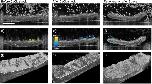 Figure 5. OCT Imaging of mouse trachea before (a,d,g), after CaCl2-shock (b,e,h) and after regeneration 8 days later (c,f,i). (a–c) Maximum intensity projection of a 200-frame video allows the visualization of flowing tracer particles as particle streaks. After application of CaCl2 flow is disrupted along the whole epithelium and tracer particles appear stationary. Flow is restored after 8 days of ex vivo culture. (d–f) Vector flow field of cilia-driven flow, gained by PTV analysis. The vector flow field shows very small and undirected movement of tracer beads after application of CaCl2 and complete restoration after regeneration. (g–i) 3D rendered speckle variance images visualize beating cilia as area of high image intensity. After CaCl2-induced loss of beating cilia, the surface appears spotted with an increase of low variance area h). After cilia restore, the surface appears smooth with high speckle variance again i). The scale bar in a) measures 0.5 mm.