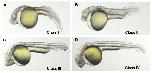Figure 1âfigure supplement 4. Phenotypic classes of MZgdf3 rescued with gdf3 RNA.(A) Class I â 27 hpf un-injected MZgdf3 mutant. Embryos had greatly reduced anterior neural tube, a cyclopic eye, no notochord and poorly formed somites. (B) Class II â âminimalâ rescue of MZgdf3 with gdf3 RNA. Embryos showed rescue of posterior notochord and somites but no change in anterior neural tube or eye compared to un-injected mutants (C) Class III â âpartialâ rescue of MZgdf3 with gdf3 RNA. In addition to rescue of posterior morphology embryos showed rescue of anterior neural tube including complex brain folds such as the midbrain-hindbrain junction but the eyes remained fused or incompletely separated. (D) Class IV - âcompleteâ rescue of MZgdf3. Embryos had morphologically normal rostral structures including fully separated eyes. The above classification scale was used to determine the optimal dose of gdf3 used in the rescue experiments presented in this report. Injecting MZgdf3 embryos with 25 pg of gdf3 RNA resulted in 0% Class 1, 39% Class II, 36% Class II and 25% Class IV embryos (n = 56). Injecting MZgdf3 embryos with 50 pg of gdf3 RNA resulted in 0% Class 1, 11% Class II, 39% Class II and 50% Class IV embryos (n = 54). Injecting MZgdf3 embryos with 100 pg of gdf3 RNA resulted in 0% Class 1, 0% Class II, 9% Class II and 91% Class IV embryos (n = 68). Doses of 200 pg gave rescue percentages similar to 100 pg (0%, 0%, 3%, 88%, Class I-IV respectively), but 9% of injected embryos (n = 65) showed tissue necrosis associated with anterior neural structures suggesting toxicity due to too much injected RNA. A dose of 100 pg was chosen for the reported rescue experiments. |