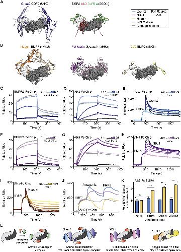 (A and B) Structures of BMP-antagonist and BMP-receptor complexes.