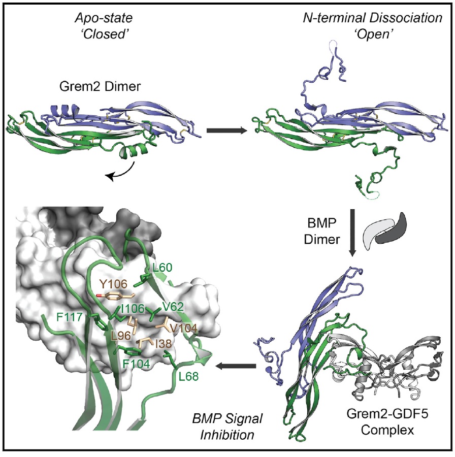 (C) Grem2 in the apo state (left; PDB: 4JPH) or GDF5-bound state (right).