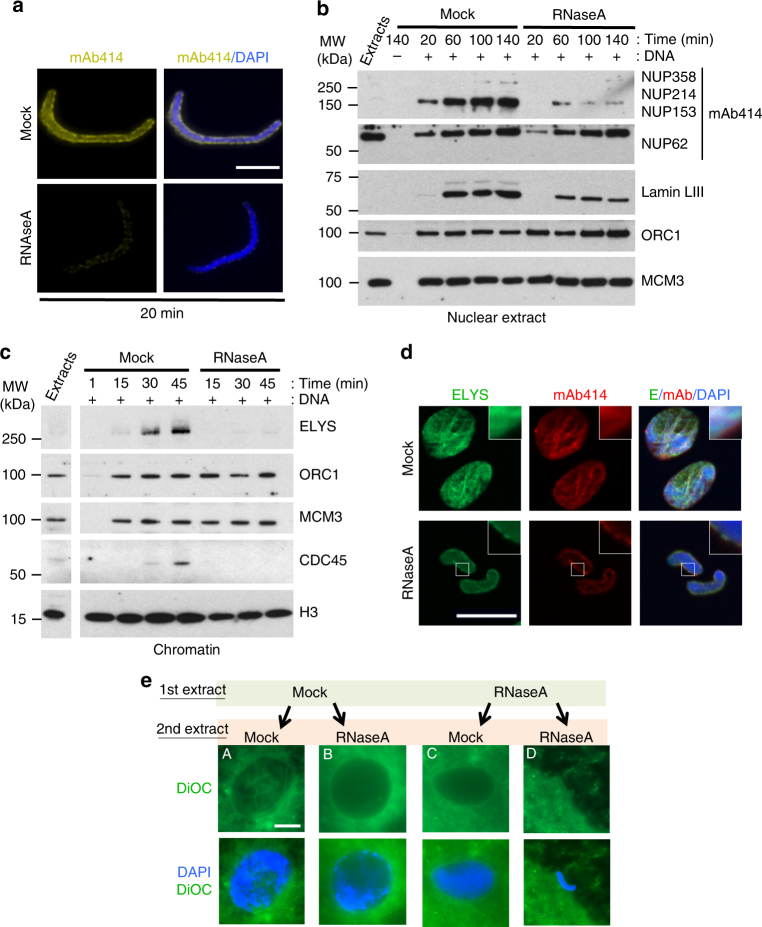 RNAs coordinate nuclear envelope assembly and DNA replication through ELYS recruitment to chromatin.