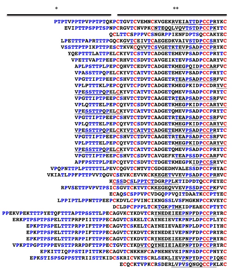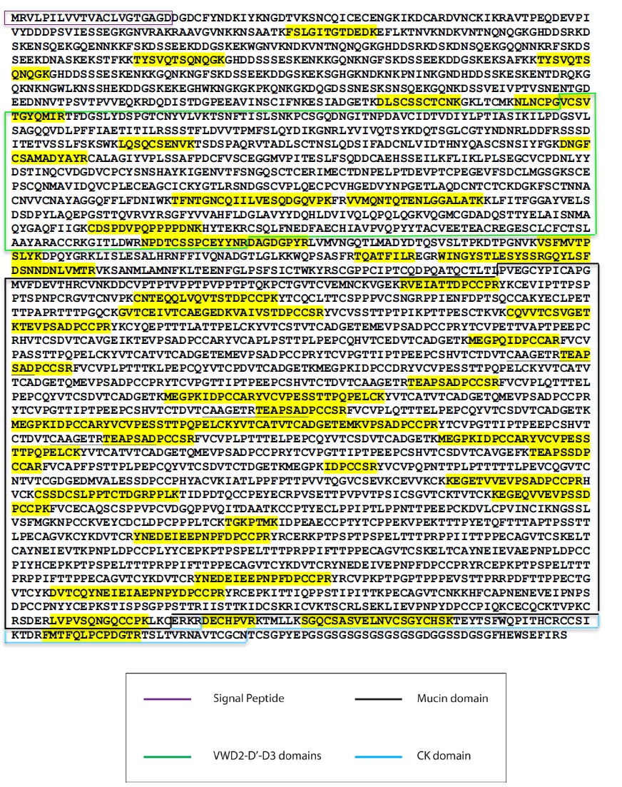 regions in the mucin domain. Peptides identified in the mucin domain by mass spectrometry are underlined, with the vast majority identified in the Cys-rich