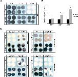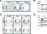 Figure 1. FGF signaling is required for proper blastula stage gene expression.(A) In situ hybridization examining FGFR4 expression in wildtype Xenopus embryos collected at blastula (stage 9, lateral view, animal pole up), late gastrula (stage 12, dorsal view, anterior up), and mid-neurula (stage 15, dorsal view, anterior up) stages. Expression is seen in the pluripotent cells of the animal hemisphere at blastula stages and in the neural plate and neural crest forming regions at gastrula and neurula states. (B) Animal pole explant assay examining FGFR4 expression. Explants were cultured alongside sibling embryos and collected at blastula (stage 9), late gastrula (stage 12), and mid-neurula (stage 15) stages. (C) In situ hybridization examining Vent2, Id3, Myc, and FoxD3 expression in blastula stage (stage 9) embryos injected with dominant-negative FGFR4 (dnFGFR4). Asterisk denotes injected side, marked by staining of the lineage tracer β-galactosidase (red). Dominant-negative FGFR4 blocks expression of Vent2 and Id3.Figure 1—figure supplement 1. Blocking FGF signaling using dnFGFR4, but not dnFGFR1, leads to a loss in neural crest gene expression at mid-neurula stages.(A–B). In situ hybridization examining FoxD3, Sox9, and Snail2 expression in mid-neurula stage (stage 16) embryos injected with dnFGFR4 (A) or dnFGFR1 (B). Asterisk denotes injected side, marked by staining of the lineage tracer β-galactosidase (red). Blocking FGF signaling using dnFGFR4 causes a loss of FoxD3, Sox9, and Snail2 expression. (C) Quantification of effects on FoxD3 expression in embryos injected with dnFGFR4 or dnFGFR1 scored for loss of neural crest/exclusion of injected cells from the neural crest, normalized to control injections. (ns, not significant; **p<0.01). |