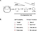 Figure 8. Summary of the effects of MAPK or PI3K/Akt inhibition.(A) Schematic representation of MAPK and PI3K/Akt cascade activation in animal cap explants (staged by sibling embryos) at the blastula stage (stage 9), midgastrula stage (stage 11), and early neurula stage (stage 13). (B) Diagram summarizing the effects of MAPK or PI3K/Akt inhibition on the adoption of neural, epidermal, mesodermal, and endodermal states. |