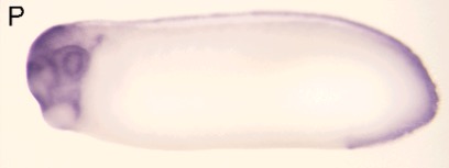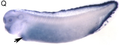 apoCI (apolipoprotein C-I) gene expression in X. laevis embryo, NF stage 22, as assayed via in situ hybridization, anterior view, dorsal up.