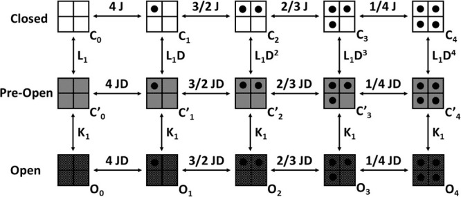 Rothberg, Kinetic structure of large-conductance Ca2+-activated K+ channels suggests that the gating includes transitions through intermediate or secondary states. A mechanism for flickers. 1998, Pubmed