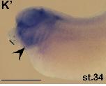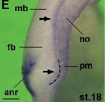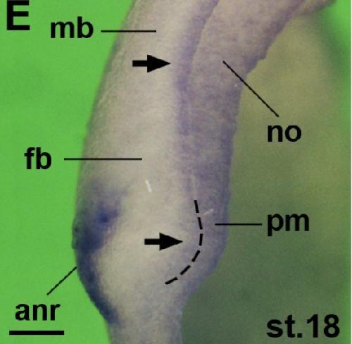 dse (dermatan sulfate epimerase) gene_symbol (gene_name) gene expression in Xenopus laevis embryo, assayed via in situ hybridization, NF stage 18, midsagittally sectioned through the head, dorsal up.