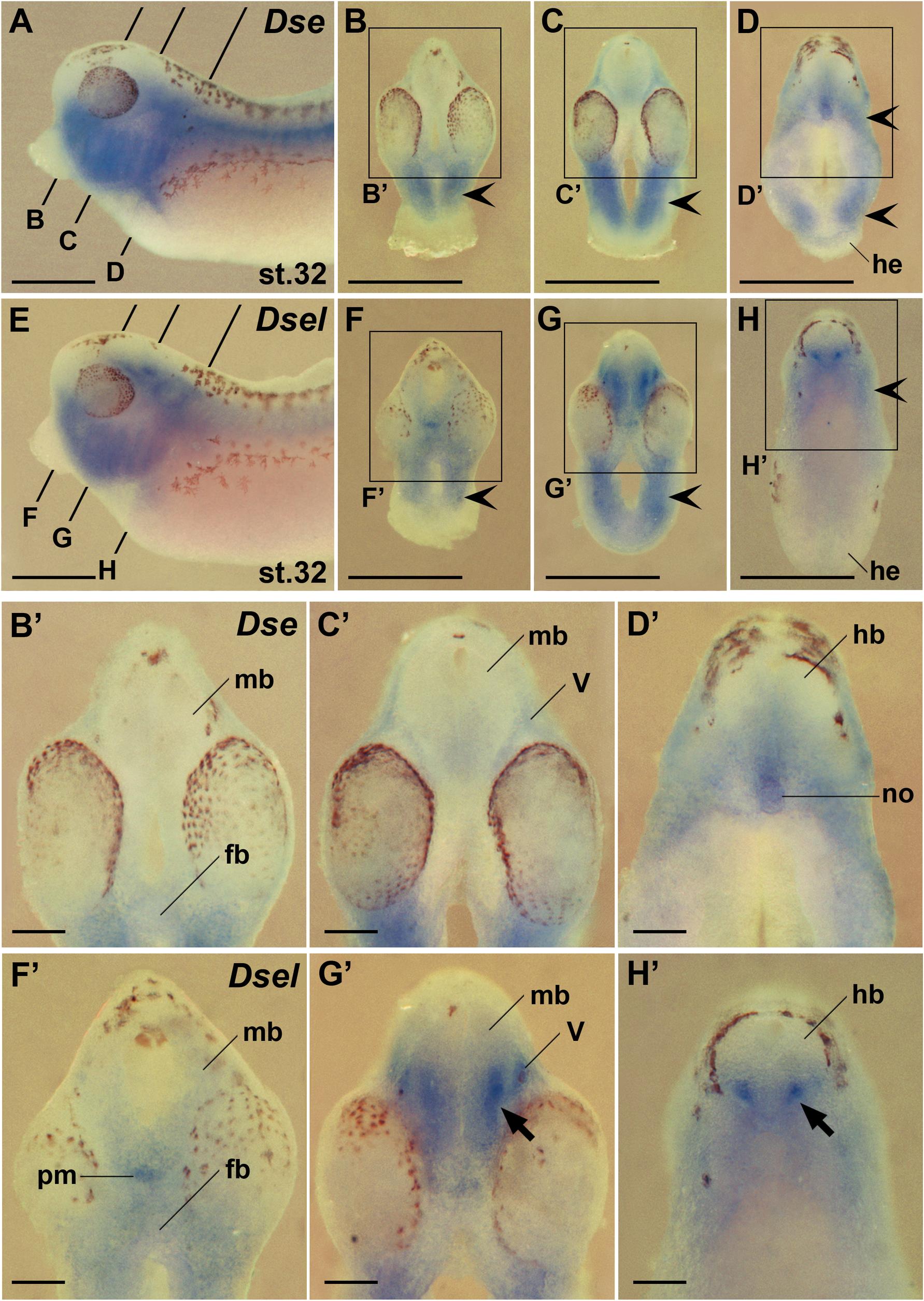 Fig 9. Comparison of Dse and Dsel expression in the head.