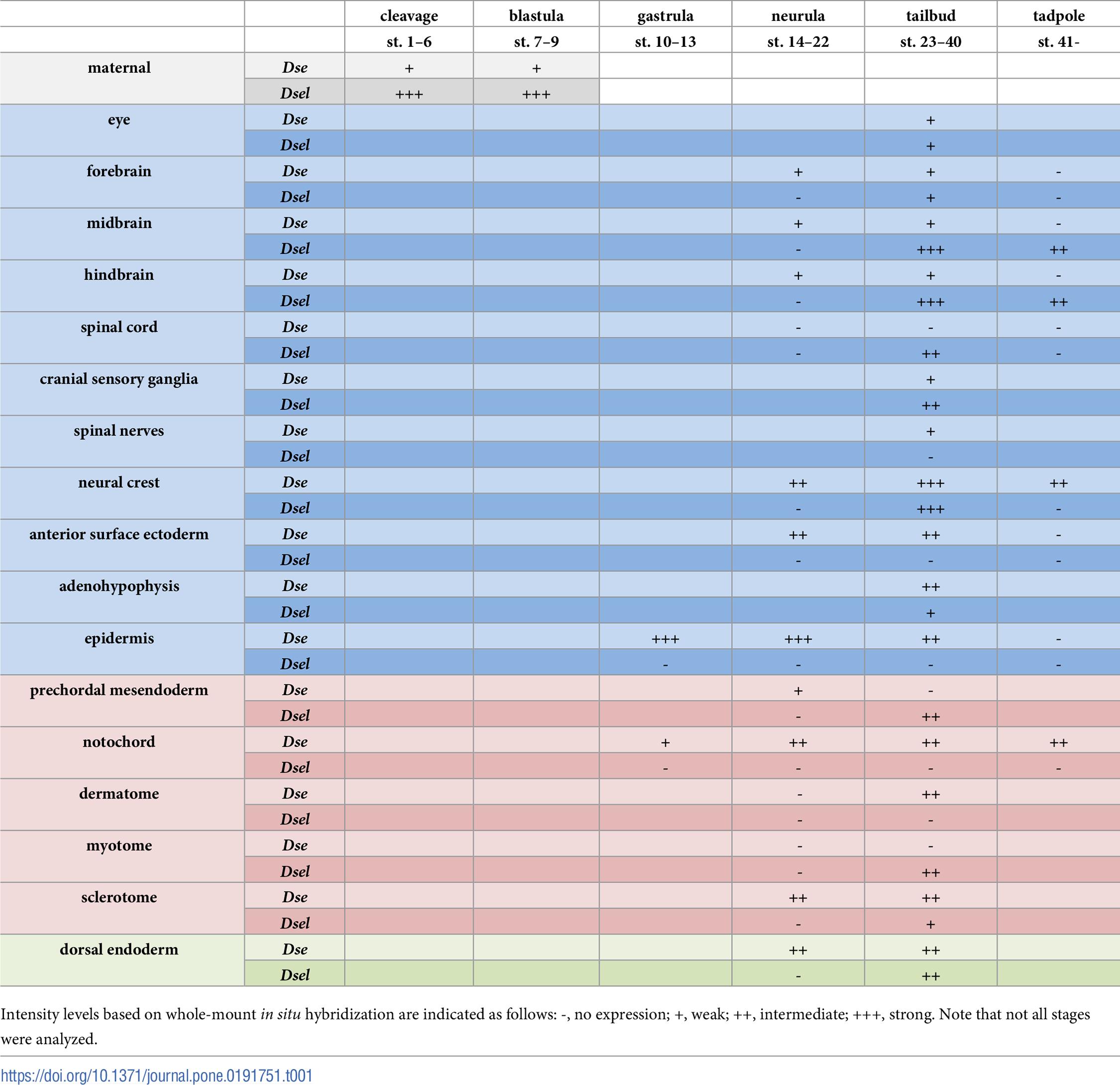 Table 1. Summary of gene expression for Dse and Dsel in Xenopus laevis embryo.