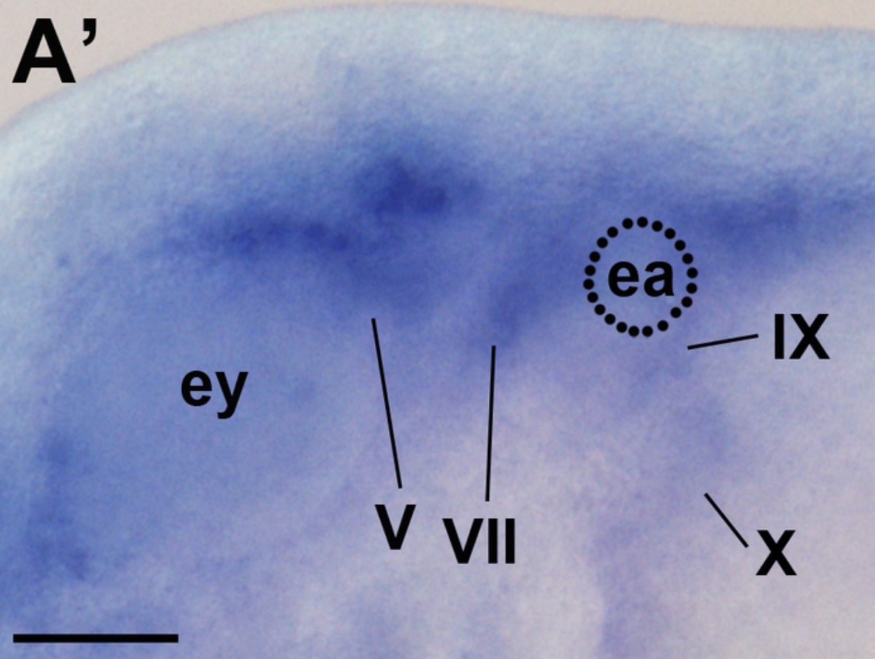 Fig 8. Dsel is expressed in the brainstem in tadpole embryos.