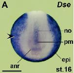 Fig 2. Dse mRNA is maternally deposited and expressed in the epidermis, neural ectoderm, notochord, somites and dorsal endoderm.