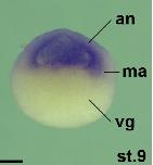 dsel (dermatan sulfate epimerase like) gene expression in Xenopus laevis embryo, hemi-sectioned , assayed via in situ hybridization, NF stage 9, anterior up.