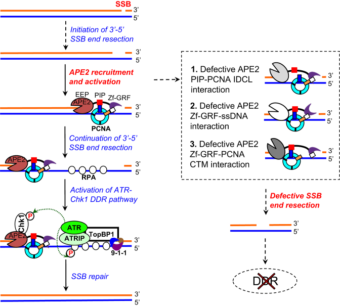 Figure 8. A working model of the molecular mechanism of APE2-mediated ATR–Chk1 DDR pathway from a defined SSB structure. Please see text for more details.