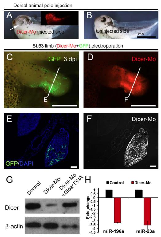 tadpole limbs. (A, B) Dicer-Mo (10 nL