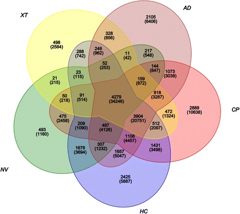 Fig. 1. Venn diagrams showing the unigenes for comparative transcriptomes. The superscript indicates the protein family and the subscript indicates the unigenes