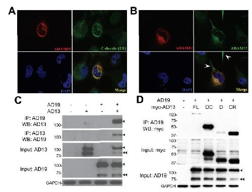ADAM13. (A,B) Colocalization of ADAM13 and ADAM19
